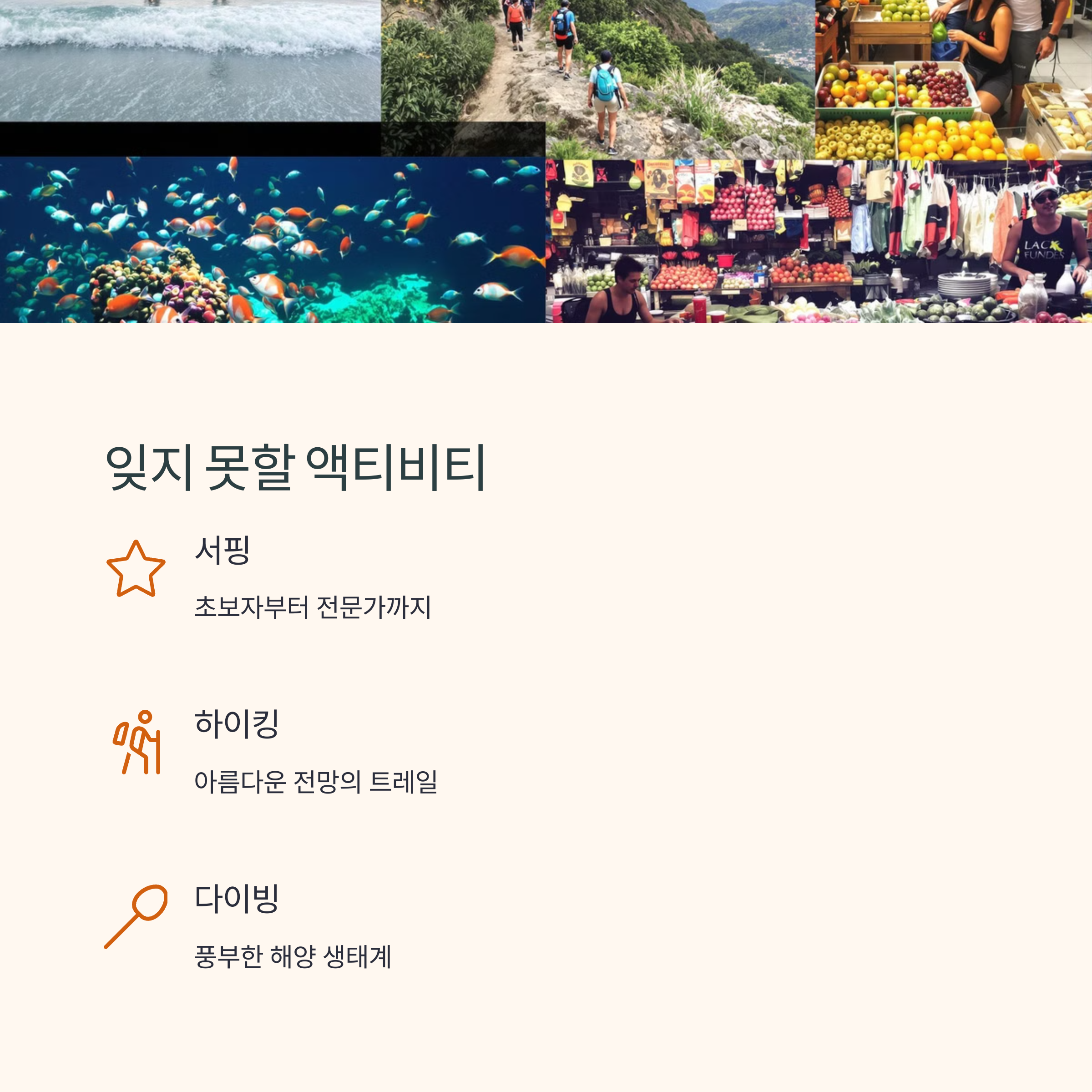 산타카타리나 섬은 아름다운 자연과 다양한 액티비티, 여유로운 분위기가 완벽하게 조화를 이루는 곳이에요. 번잡한 관광지에서 벗어나 자연을 만끽하고 싶은 사람들에게 강력 추천해요. 숨겨진 낙원에서 잊지 못할 여행을 경험해보세요!