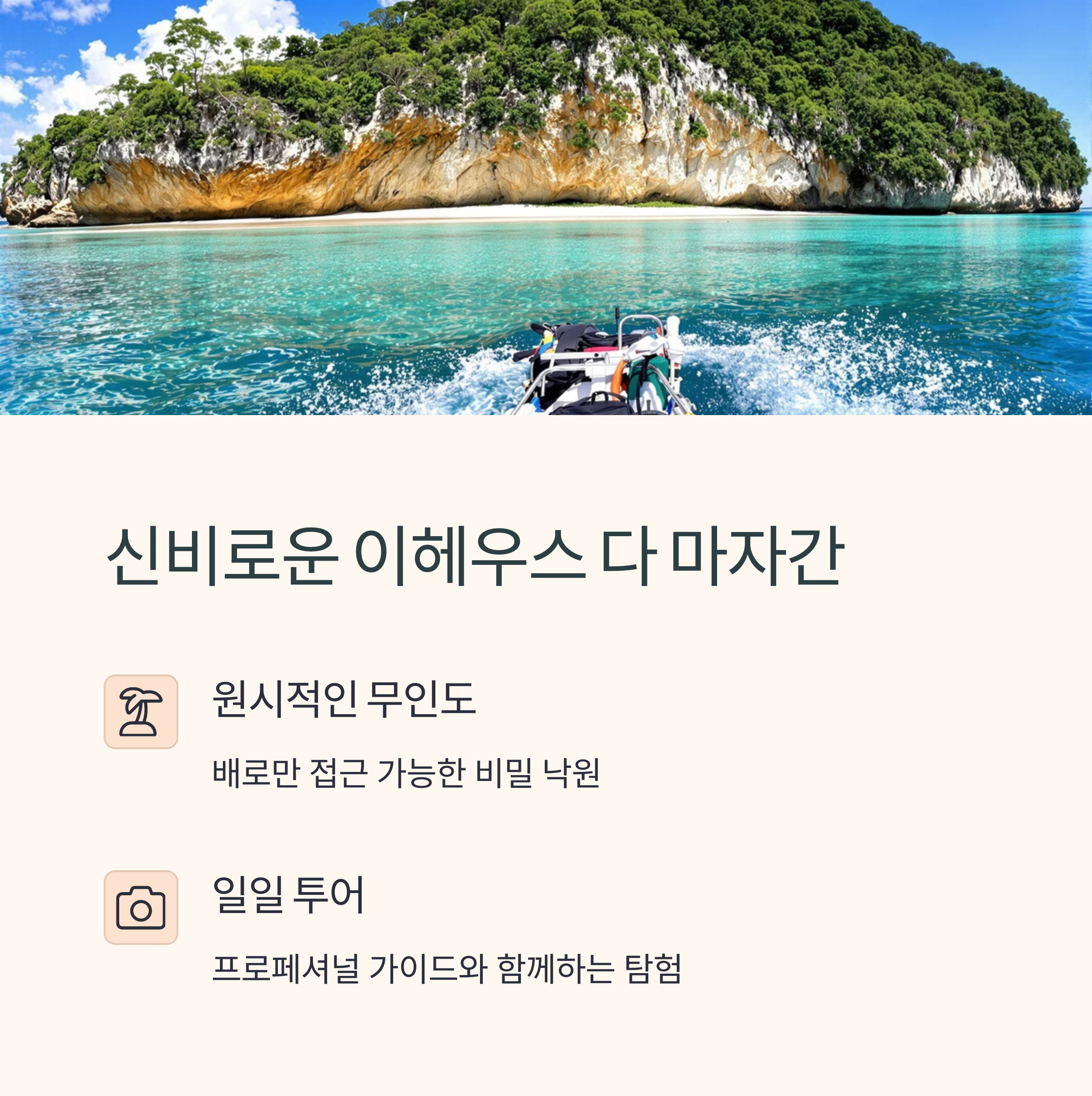 - 이헤우스 다 마자간 (Ilheus da Magia) - 배를 타고 가는 무인도